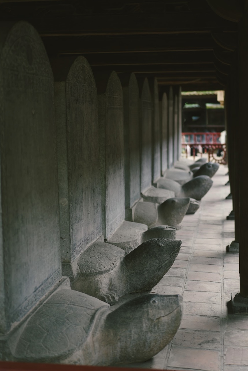 Stone steles rest on turtle backs, honouring Vietnam’s long-standing tradition of scholarship