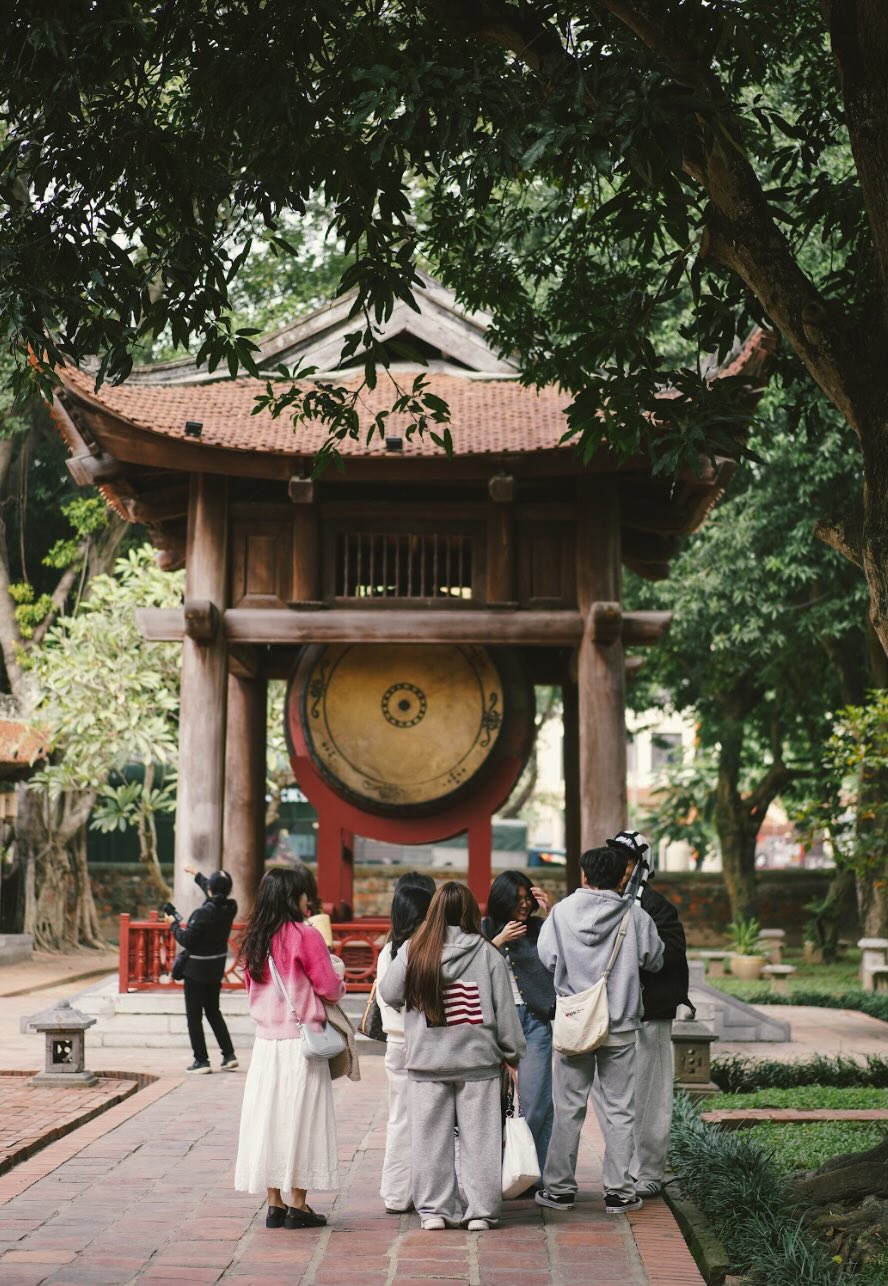 Generational dialogue – young visitors exploring and photographing the Temple of Literature