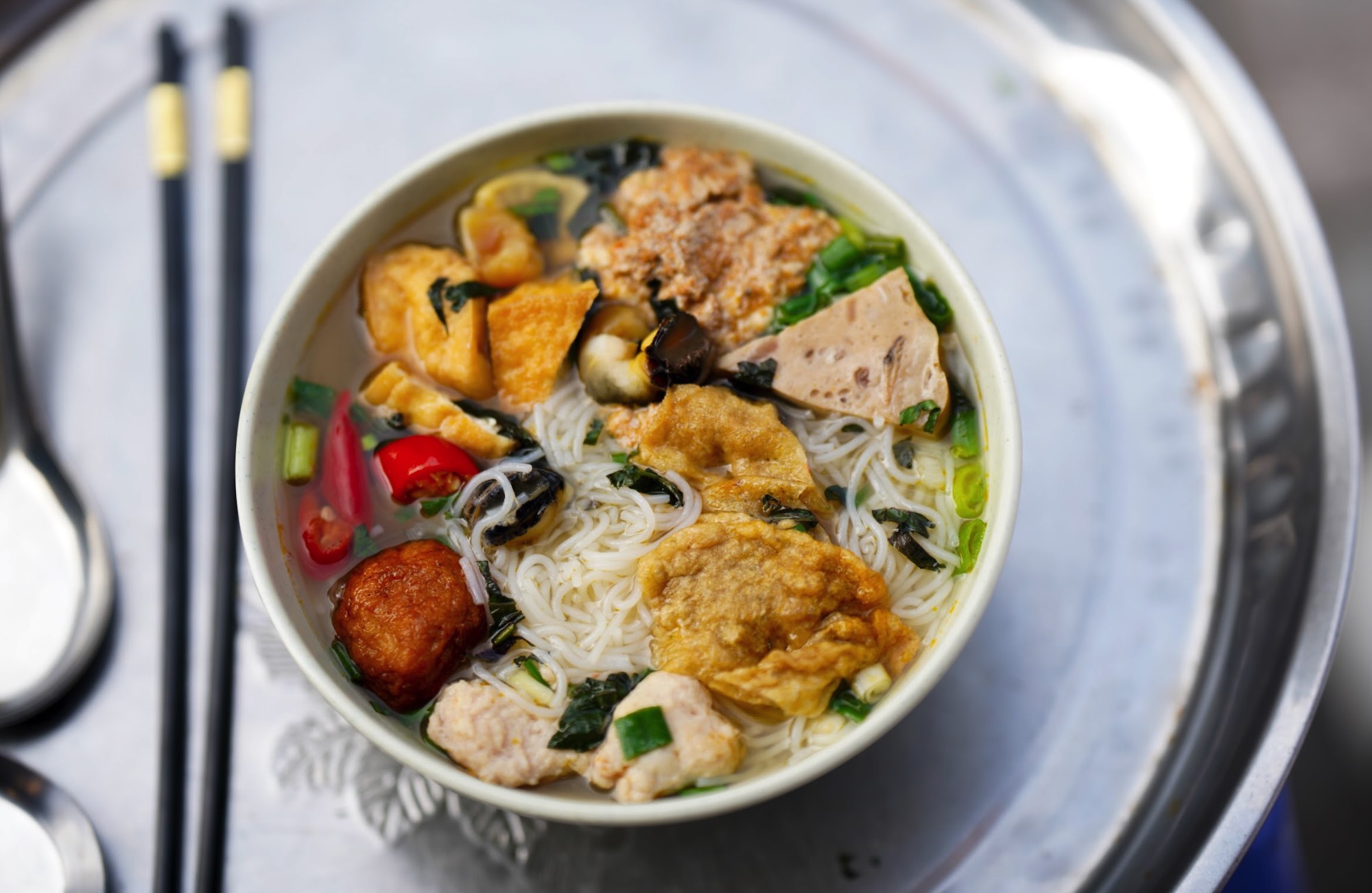 Hanoi-style snail noodle soup (bun oc) – a distinctive staple of the city’s street food scene