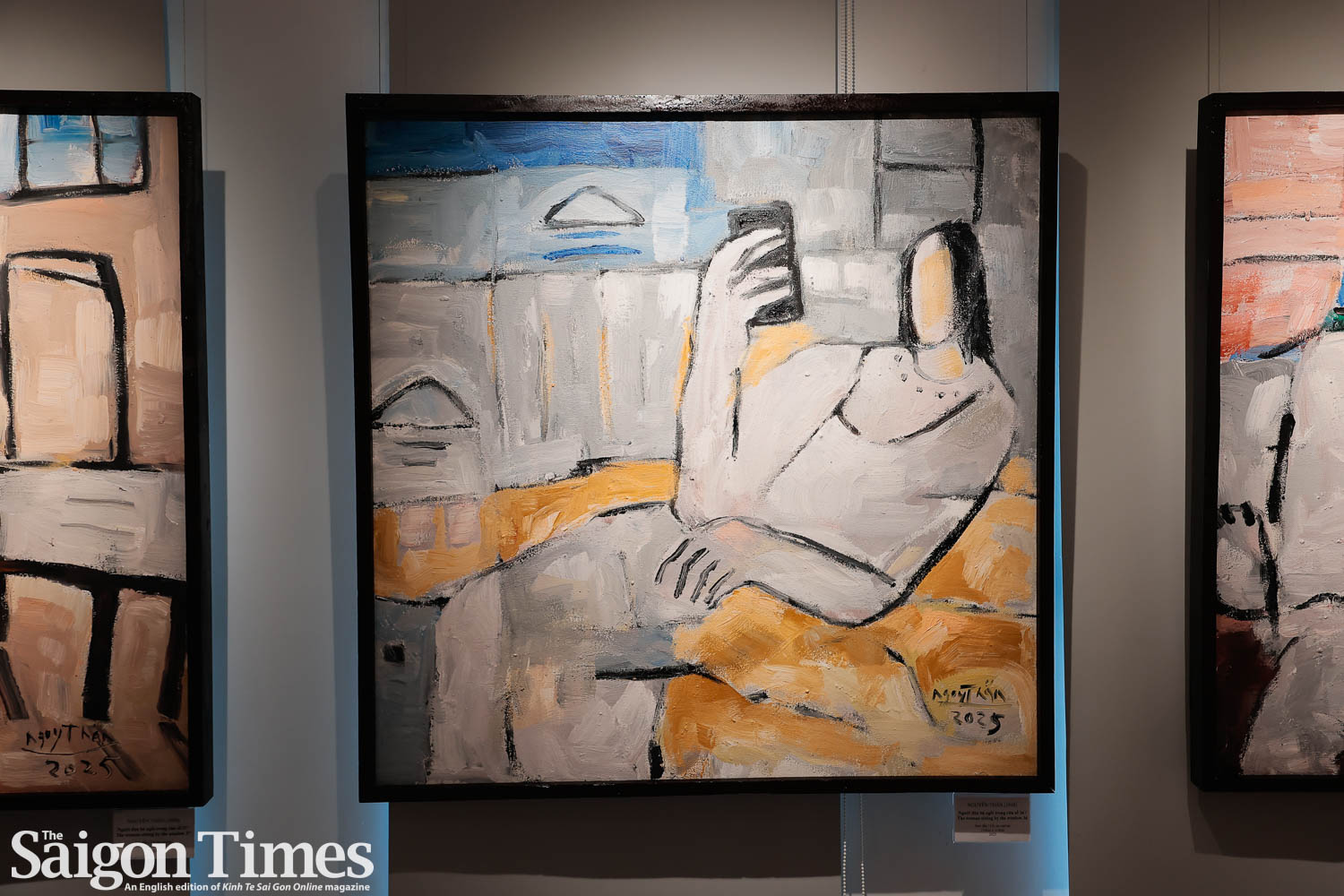 The exhibition centers on the recurring image of a woman seated within a window frame. Nguyen Than said the motif represents solitude, reflection, and personal contemplation rather than a specific individual. The figures are deliberately simplified, with minimal facial features, allowing the viewer to focus on light, color, and posture as expressions of inner life.
