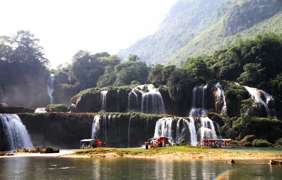 Lying on the Vietnam-China border, with a height of over 60 meters and the longest slope of some 30 meters, Ban Gioc Waterfall encompasses a series of cascades. It is one of the most beautiful waterfalls of Vietnam, the largest waterfall in Southeast Asia, and the fourth largest border waterfall in the world.