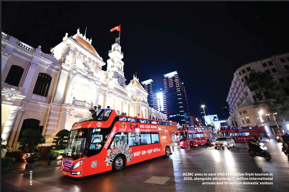 HCMC has set a target of generating VND330 trillion in tourism revenue in 2026, alongside goals of attracting 11 million international visitors and 50 million domestic travelers. To meet these targets, the city plans to roll out a broad strategy focused on developing signature tourism products, upgrading infrastructure, stepping up promotion, accelerating digital transformation, and tapping the potential of its districts and localities. The plans were outlined by delegates at a conference reviewing HCMC’s tourism performance in 2025 and setting key priorities for 2026, held in the city on December 30. The tourism sector rebounded strongly in 2025 after a difficult period, with international arrivals reaching 8.56 million and domestic visitors nearly 45.6 million. Tourism revenue rose to about VND279 trillion, exceeding the annual target by 101%. Building on this momentum, city authorities see 2026 as a year to scale up both visitor numbers and spending. Revamping tourism products Pham Huy Binh, director of HCMC’s Department of Tourism, said the city has been reviewing and repositioning its tourism offerings since HCMC’s merger with Binh Duong and Ba Ria-Vung Tau, with a focus on developing distinctive products. Night time tourism has been identified as a priority, linked with cultural, sports, museum […]