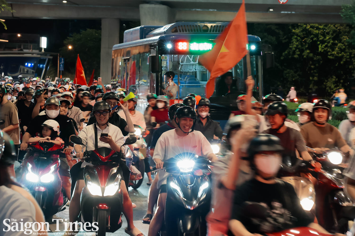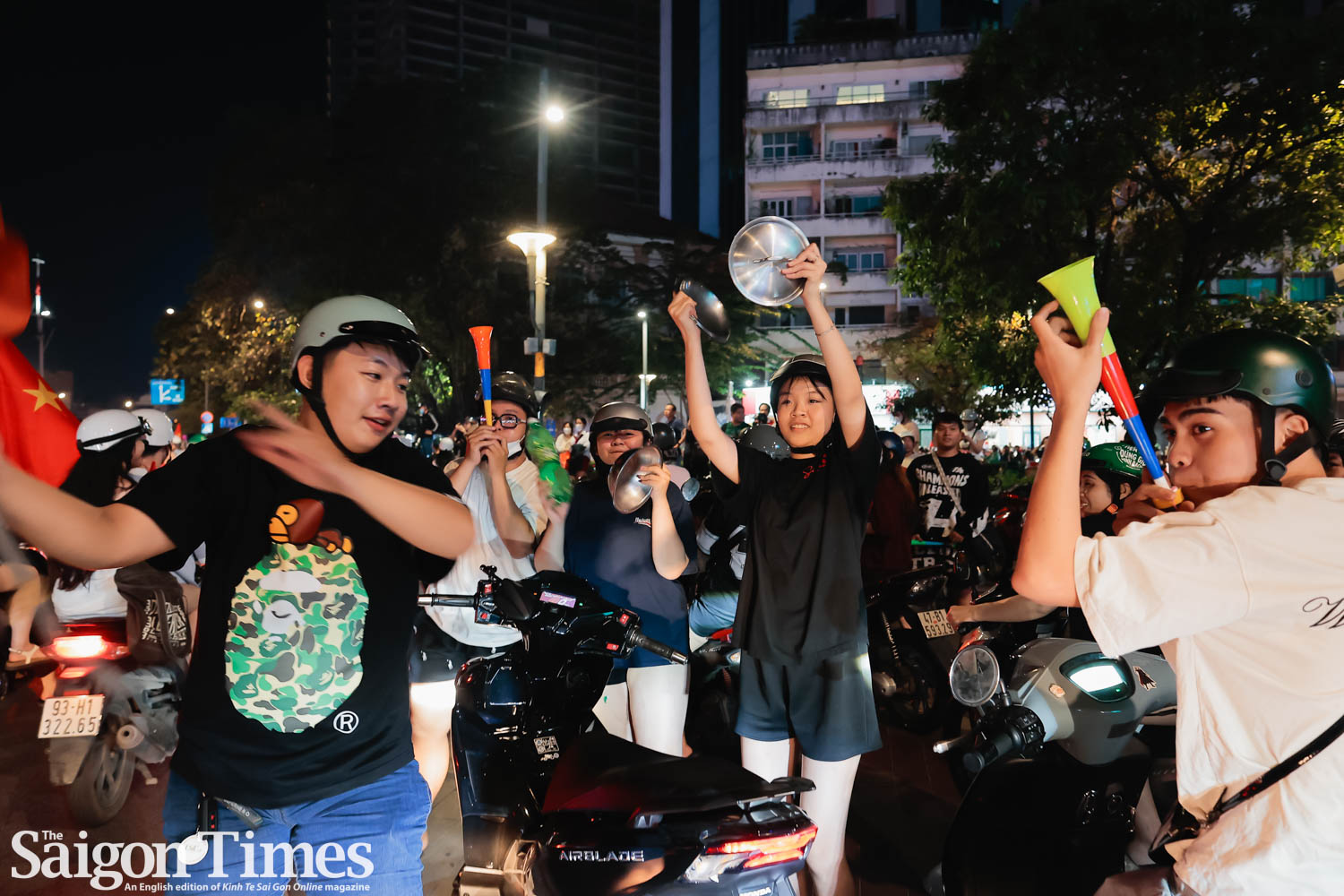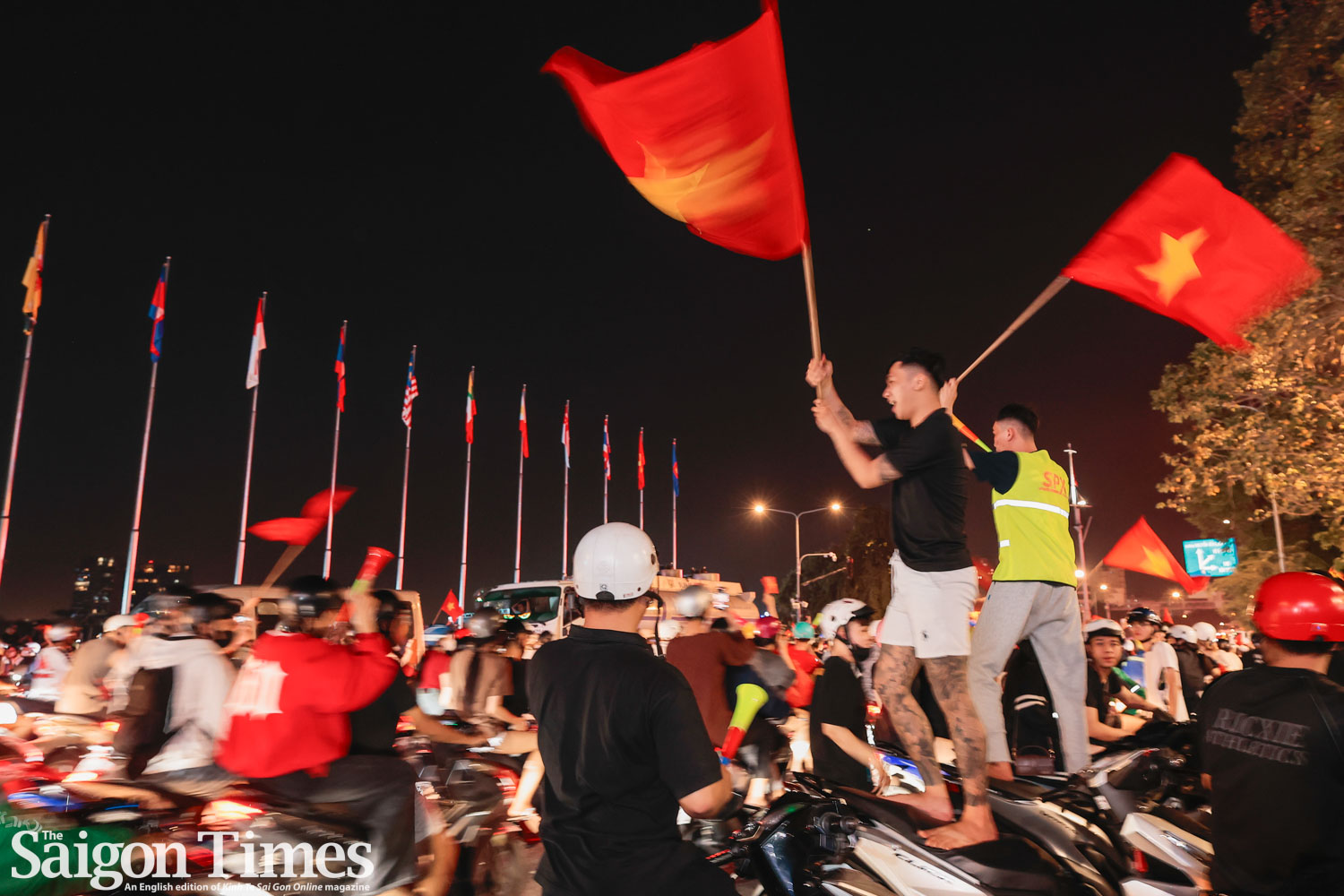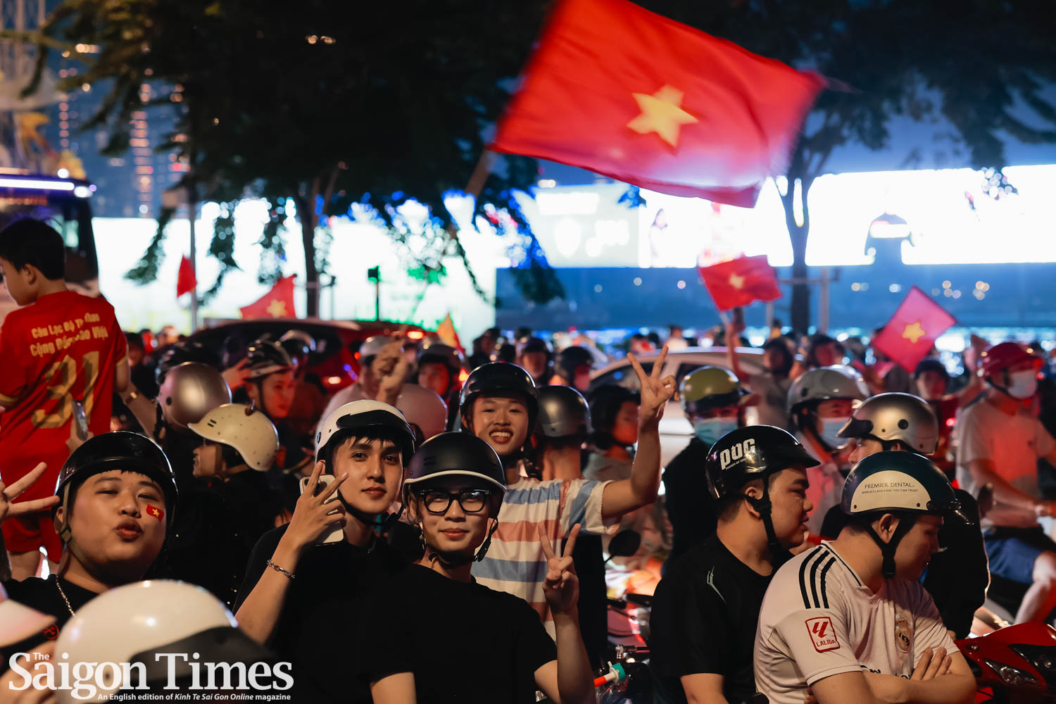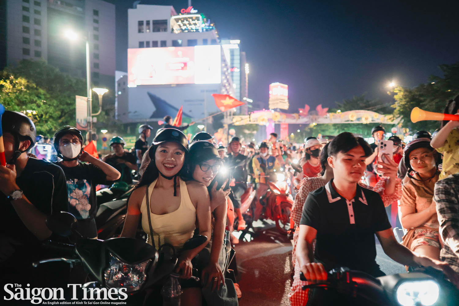 HCMC – Thousands of football fans in HCMC hit the streets with flags, horns and drums for celebration after Vietnam’s U22 football team won the men’s gold medal at the 33rd SEA Games on the evening of December 18.