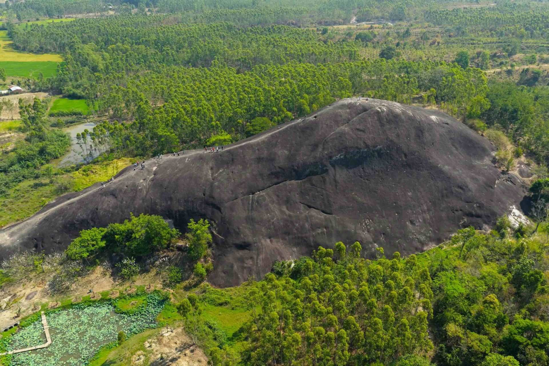 Located about 40 kilometers from downtown Buon Ma Thuot Ward along National Highway 27, the rock measures roughly 200 meters in length, has a base circumference of nearly 500 meters, and stands more than 30 meters tall. It is considered one of Vietnam’s largest monolithic granite formations.