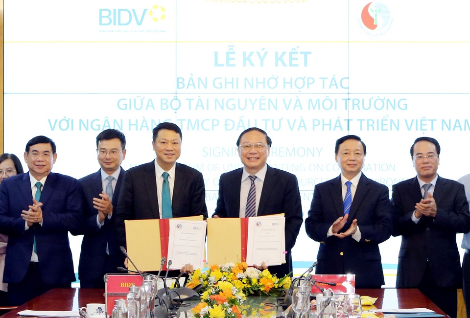 Tran Hong Ha, Minister of Natural Resources and Environment, said that the cooperation between the ministry and BIDV in environmental protection fields would develop green bonds and green credit, boost the growth of the carbon market, aid enterprises with environmental protection, climate change response and renewable energy transformation and contribute to the transition to a low-carbon economy.