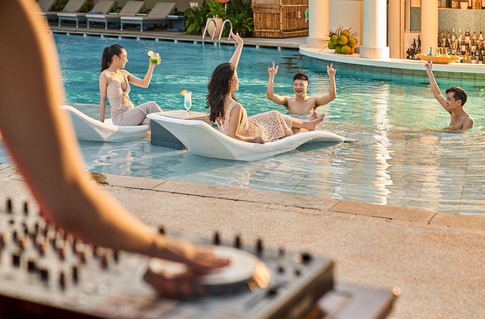 Music lovers who enjoy a vibrant atmosphere cannot miss the moment of relaxation by the East Sea pool while listening to DJs play music from 3:15 PM to 5:45 PM. The Main Lobby area always has a soothing live band playing until 7 PM, leading up to the spectacular water music show.