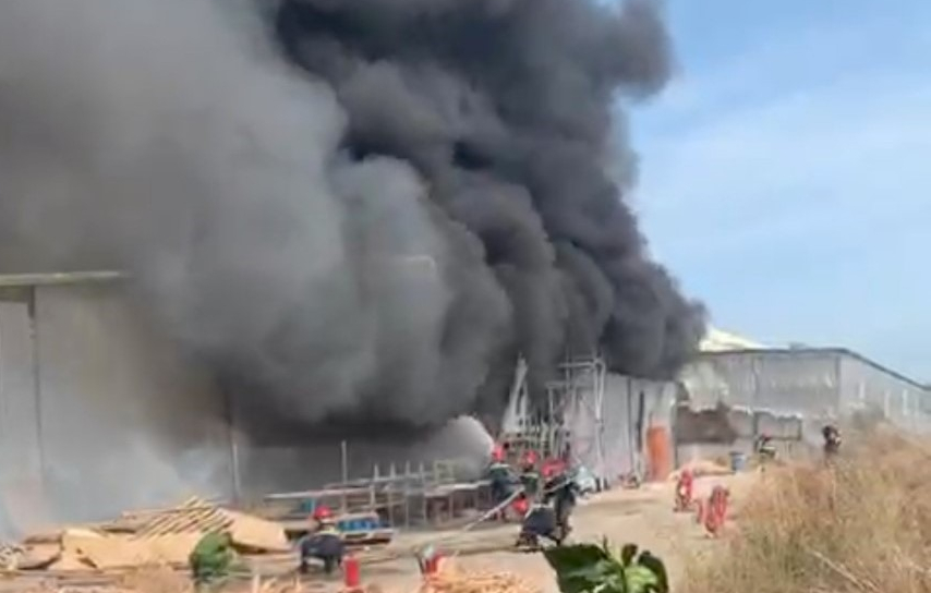 HCMC – A huge fire erupted at the warehouse of a wood processing firm at the Minh Hung 3 industrial park in Binh Phuoc Province’s Chon Thanh Town this morning, February 27.