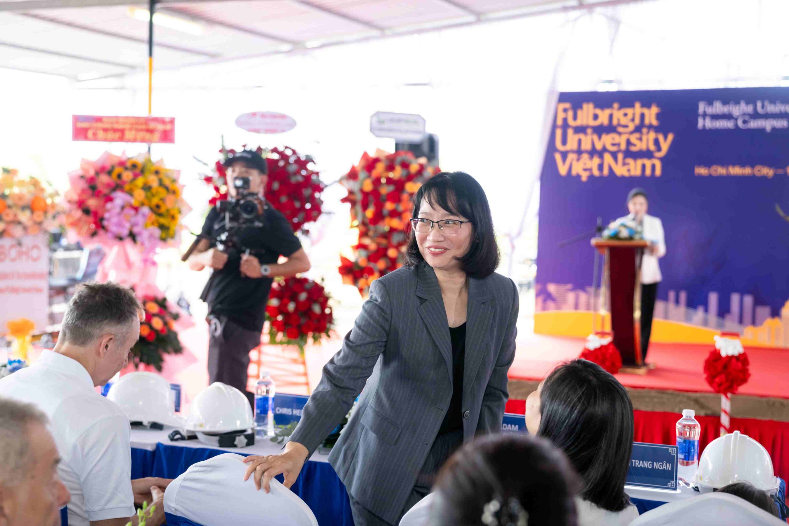Indeed the event saw strong government and institutional support, as it was attended by Ms. Trần Thị Diệu Thúy, Vice Chairwoman of the Ho Chi Minh City People’s Committee, along with representatives from the Saigon Hi-Tech Park Management Board and Tang Nhon Phu Ward. Also present were members of Fulbright’s Board of Trustees, key partners, and representatives from Newtecons, Fulbright’s construction partner.