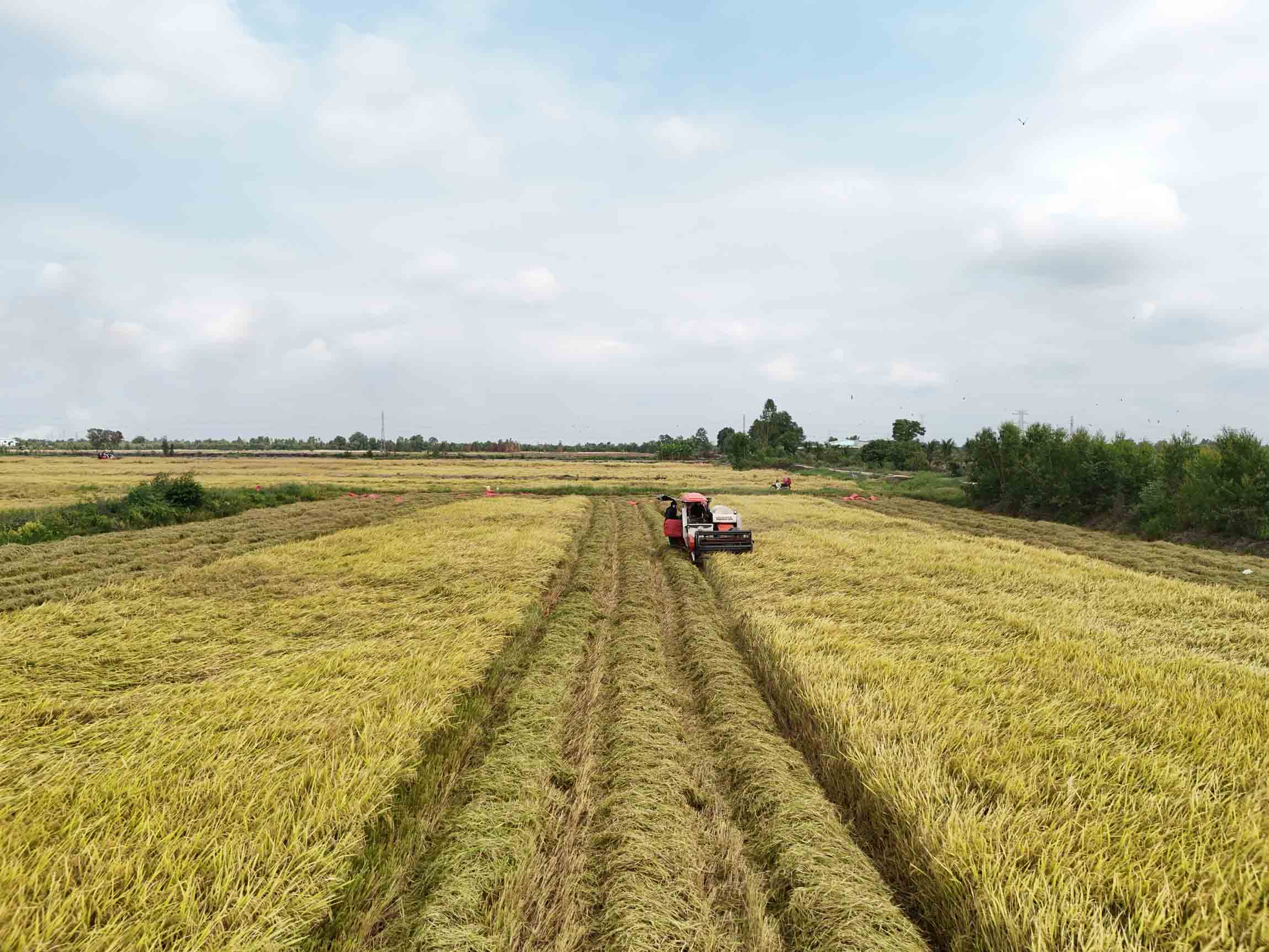 In Tay Ninh Province, harvesting has intensified over the past three weeks, with machines running steadily and farmers working from dawn to dusk. The hum of combine harvesters and tractors, mingled with conversation and laughter, creates a vivid picture of rural life in motion.