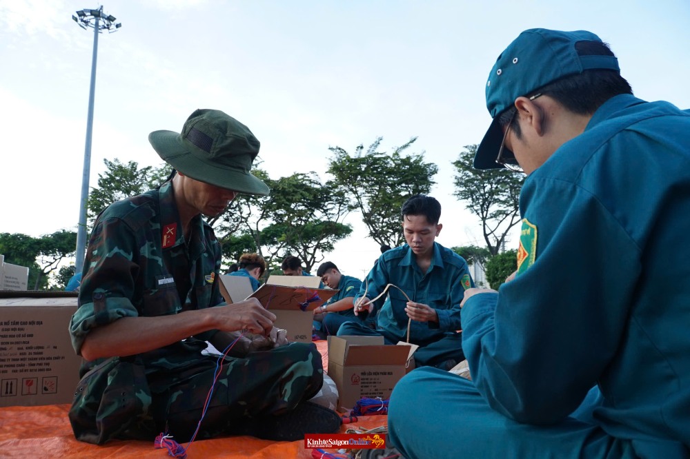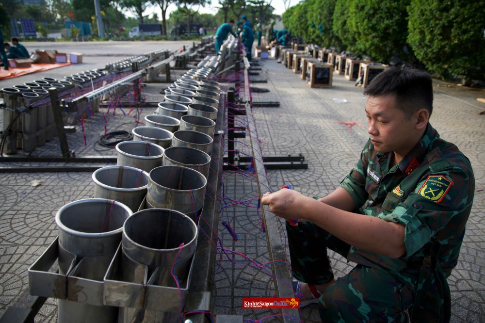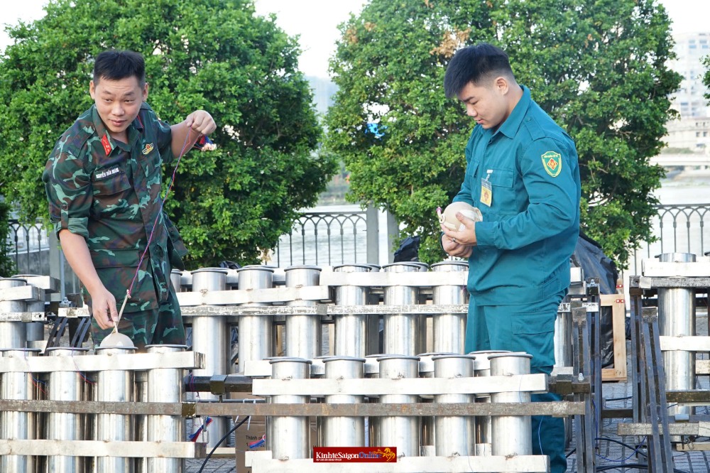 Over the past two days, functional forces installed launch tubes, wirings, and fireworks shells under strict procedures. Officers and soldiers from the HCMC Command handled technical connections to ensure progress.