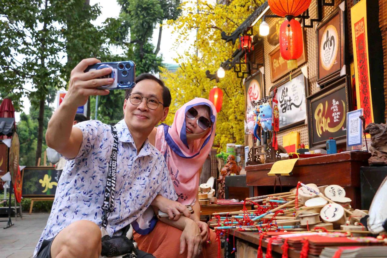 Not only a familiar destination for local residents, the calligraphy street—with its distinctly Vietnamese cultural setting—also draws many international visitors eager to explore and experience the festive atmosphere of the new year.