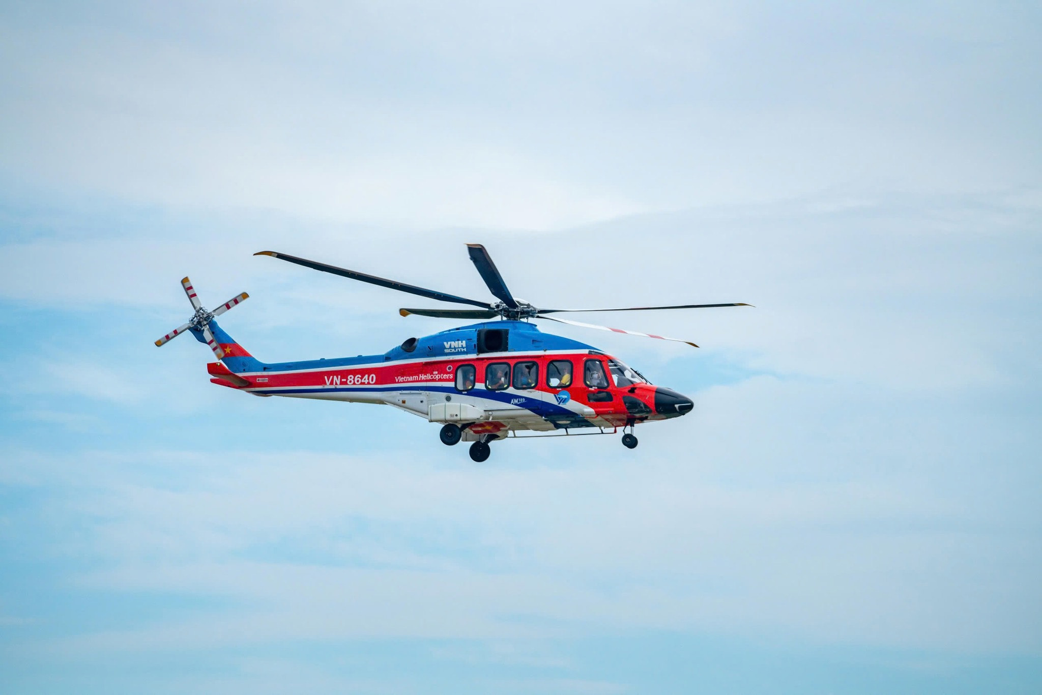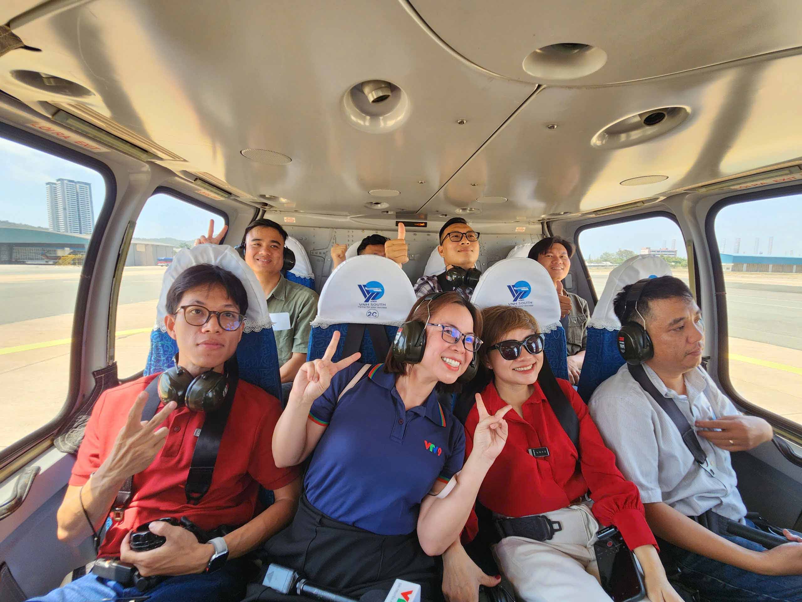 The helicopter gently gains altitude, leaving Vung Tau Airport to head toward the scenic coastline