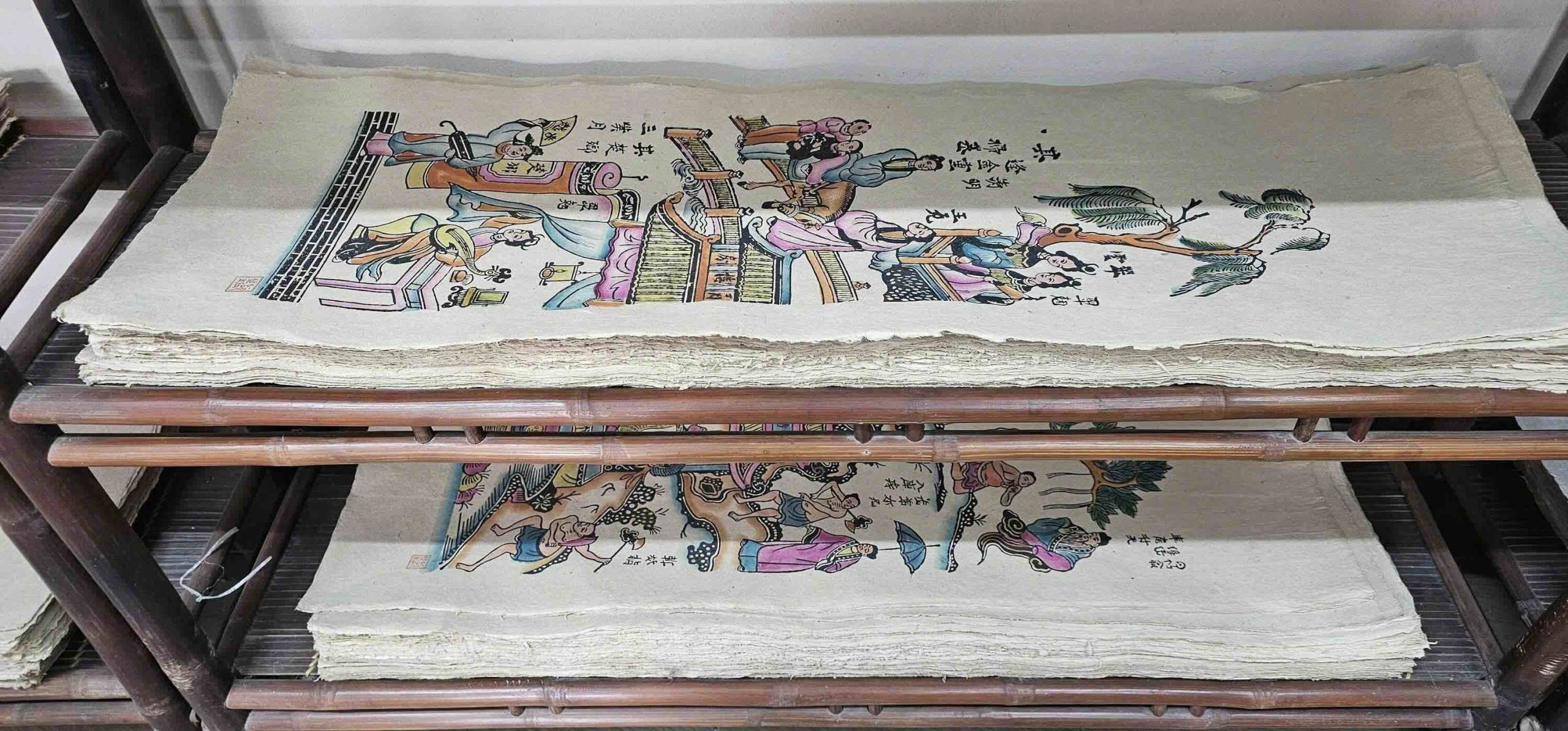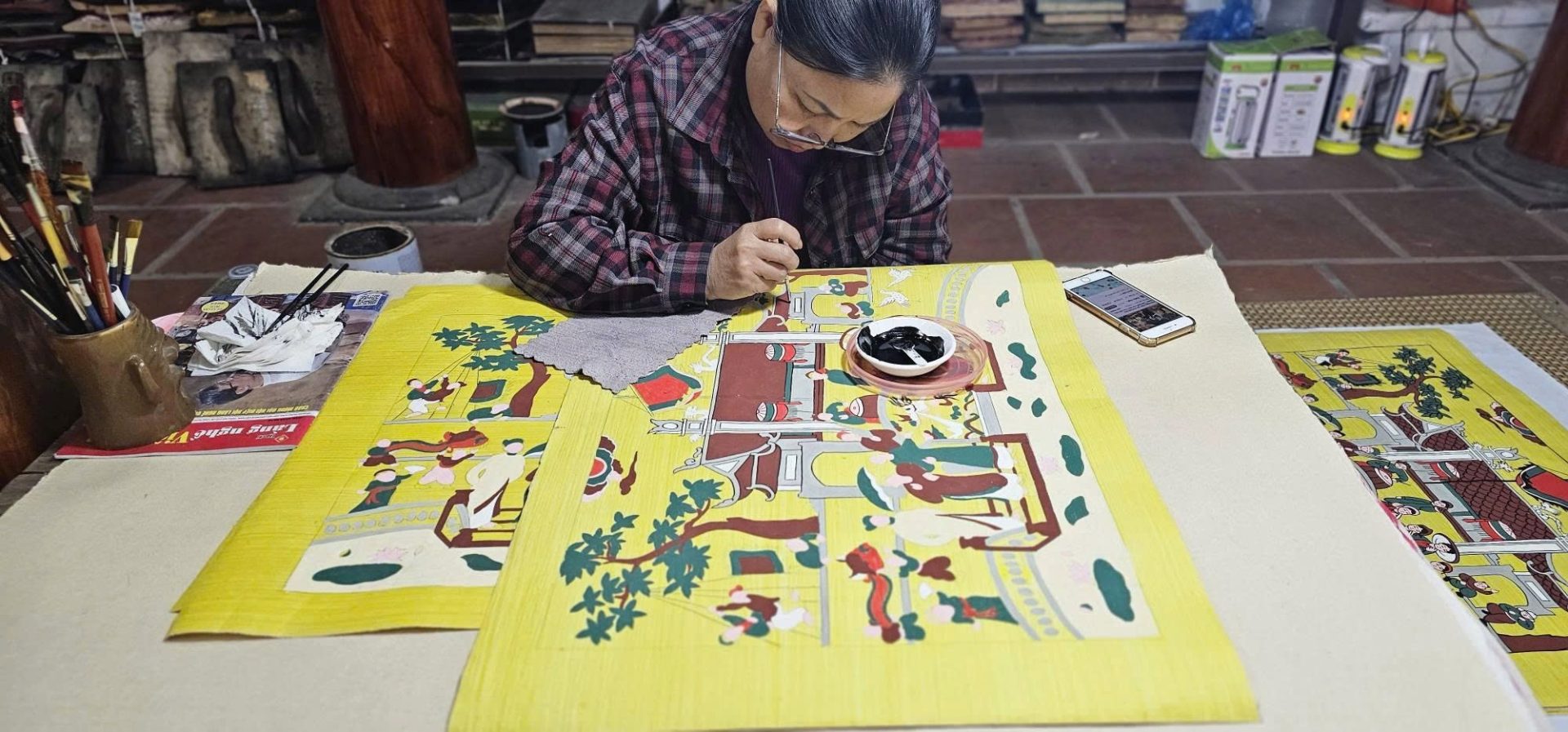 Originating in Dong Ho village, Bac Ninh Province, the craft of making Dong Ho folk paintings involves hand-printed woodblock art that depicts everyday life in northern Vietnam. The works utilize natural pigments, but the tradition has been waning due to shifting consumer preferences and decreased market demand.