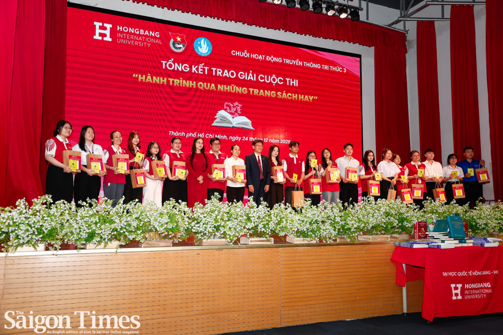 HCMC – Hong Bang International University (HIU) on December 24 held a knowledge-sharing program titled “Connecting Knowledge and Compassion – A Meeting Place for Successful Minds,” alongside the closing and award ceremony of the reading contest “A Journey Through Books.”