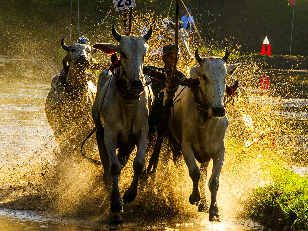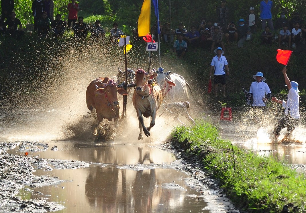 The Ro Pagoda Ox Racing Festival is a unique cultural and sporting tradition of the Khmer people in the Bay Nui region in the Mekong Delta province of An Giang. Held annually during the Sene Dolta Festival, a ceremony to honor ancestors, the event is a lively celebration that also acts as a prayer for good weather and a bumper harvest.