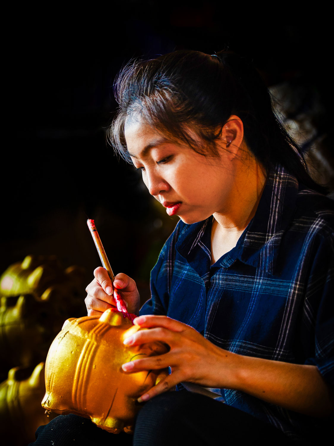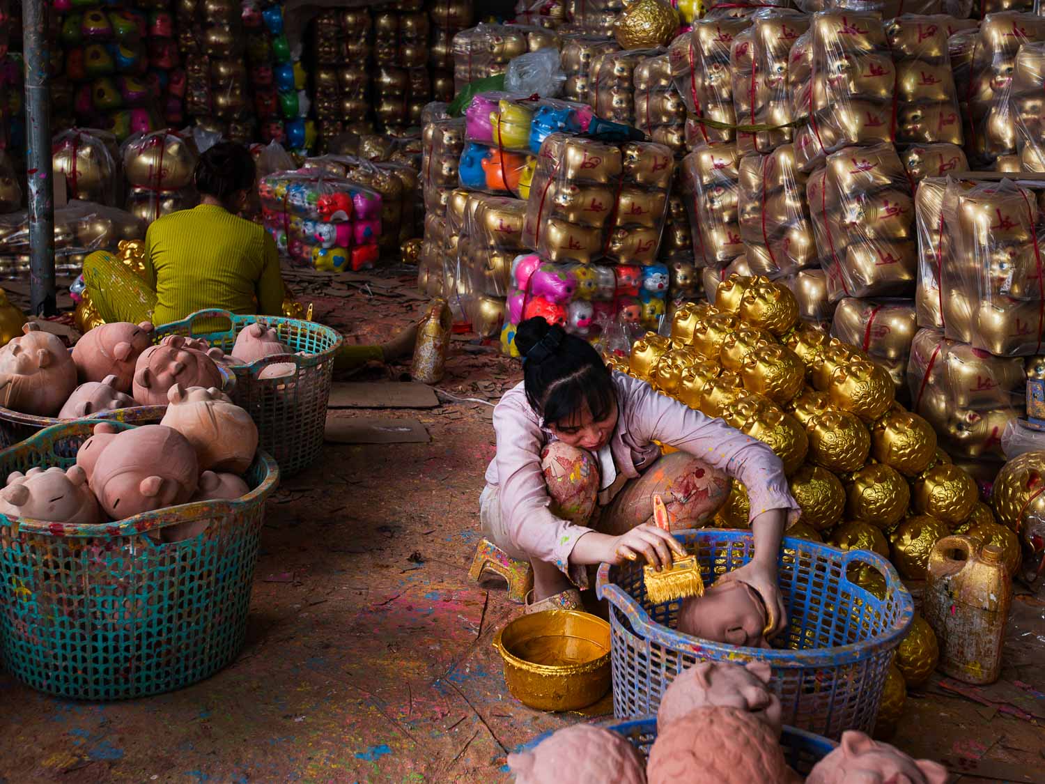 In recent years, to safeguard the urban environment, traditional wood-fired kilns have been moved further away to areas like Thuan An. However, the core of the craft remains in Lai Thieu, where nearly a hundred workshops focus on the detailed stages of decoration and finishing. Here, dusty terracotta forms are turned into vibrant, sparkling symbols of luck and prosperity before being shipped to markets far and wide.