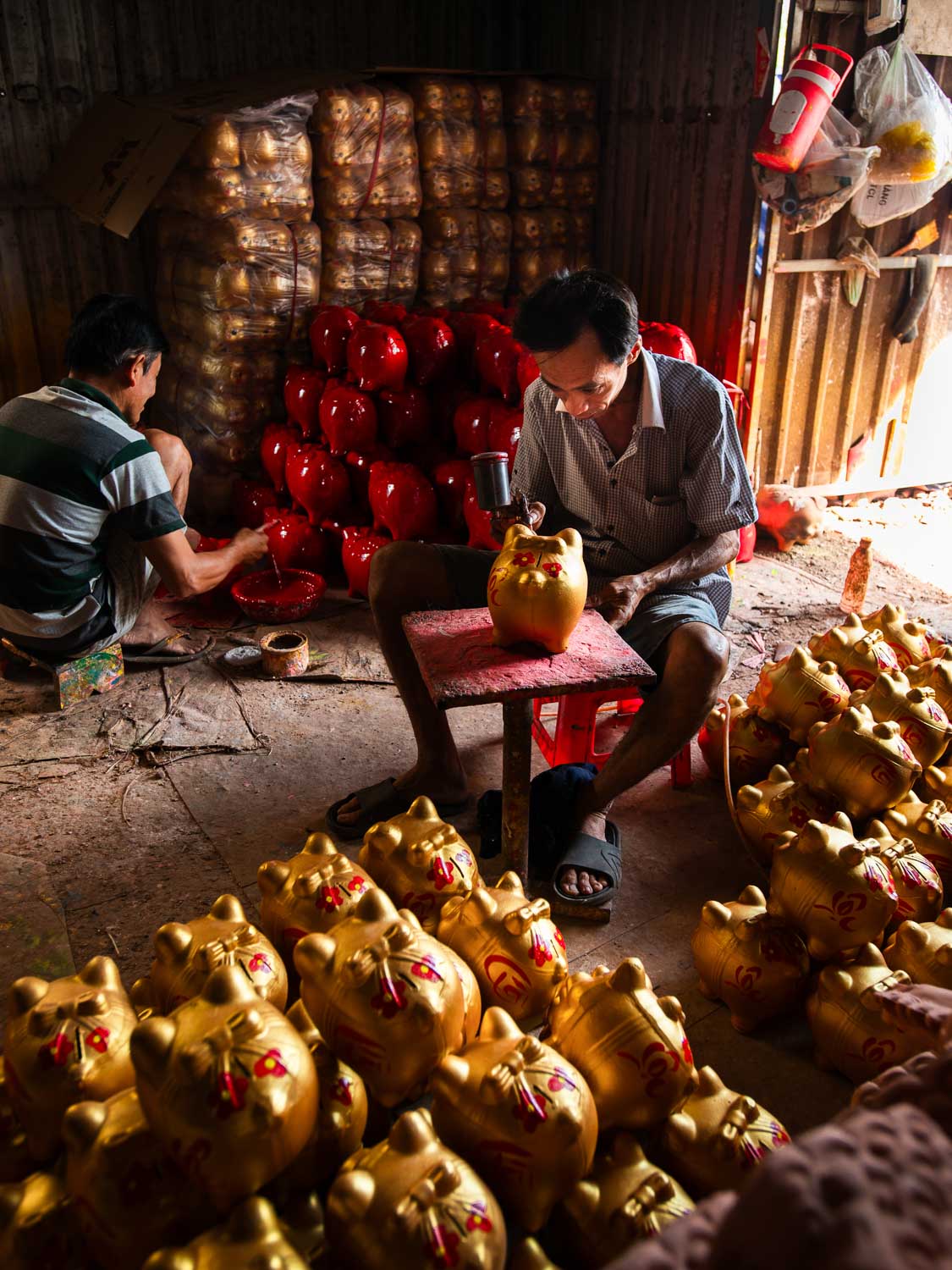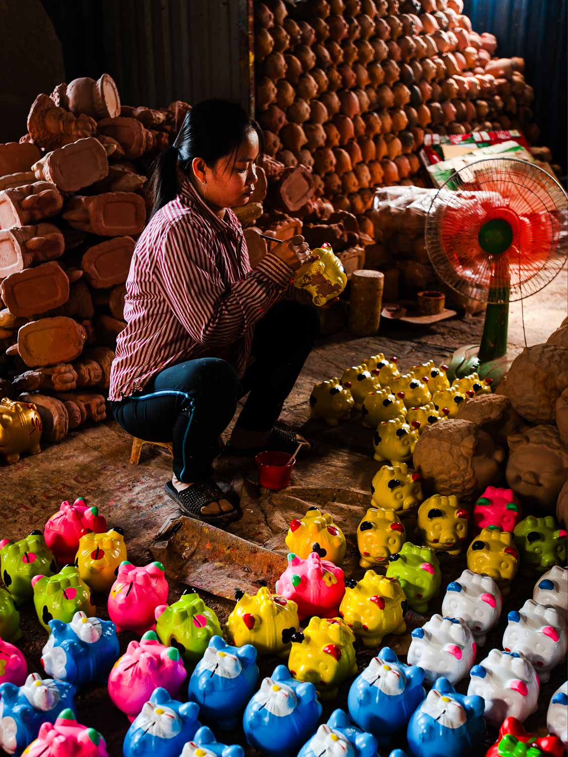 For many years, the piggy bank has been a beloved household symbol throughout Vietnam. More than just a simple toy, these charming clay banks act as a child’s first secure safe and help parents teach the values of thrift and patience. The origin of this craft is Lai Thieu in HCMC (formerly Thu Dau Mot Town, Binh Duong Province), the largest production center supplying these iconic items to the entire South.