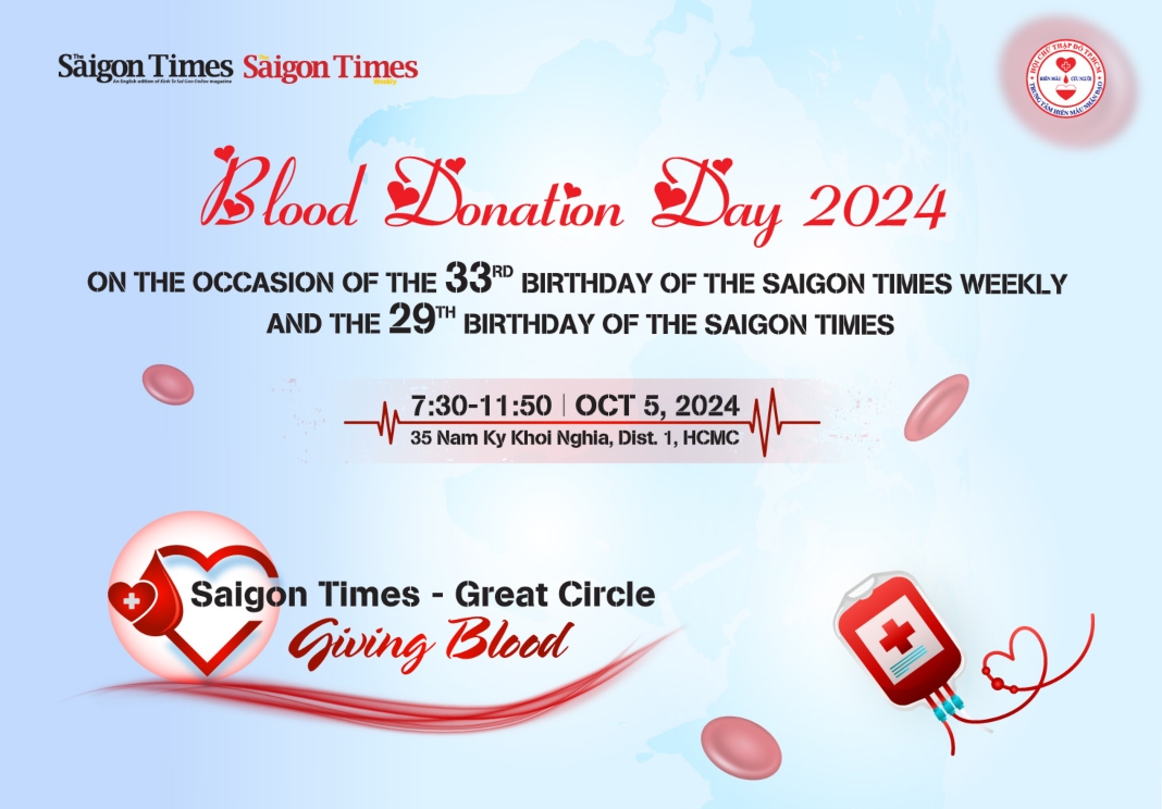 This year, the blood drive is set to take place at the Saigon Times Group head office at 35 Nam Ky Khoi Nghia Street, Nguyen Thai Binh Ward, District 1, HCMC, from 7:30 a.m. to 11:30 a.m. on October 5.