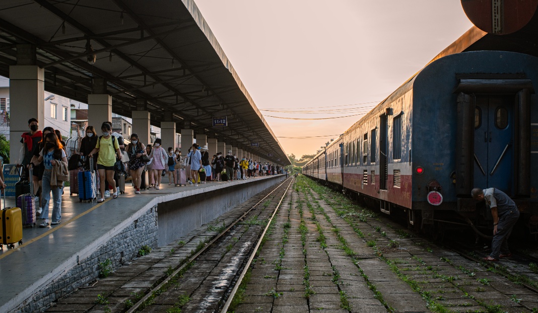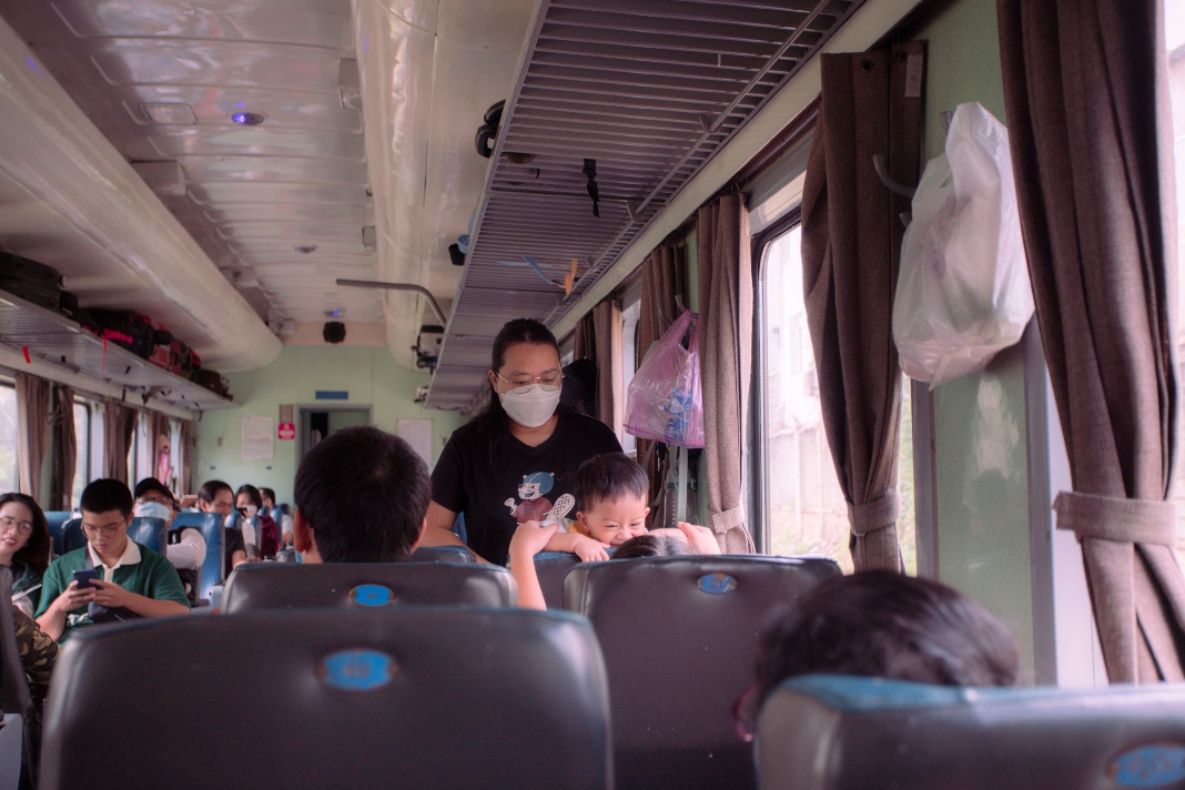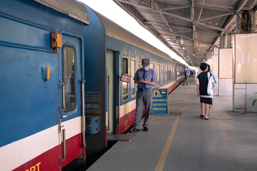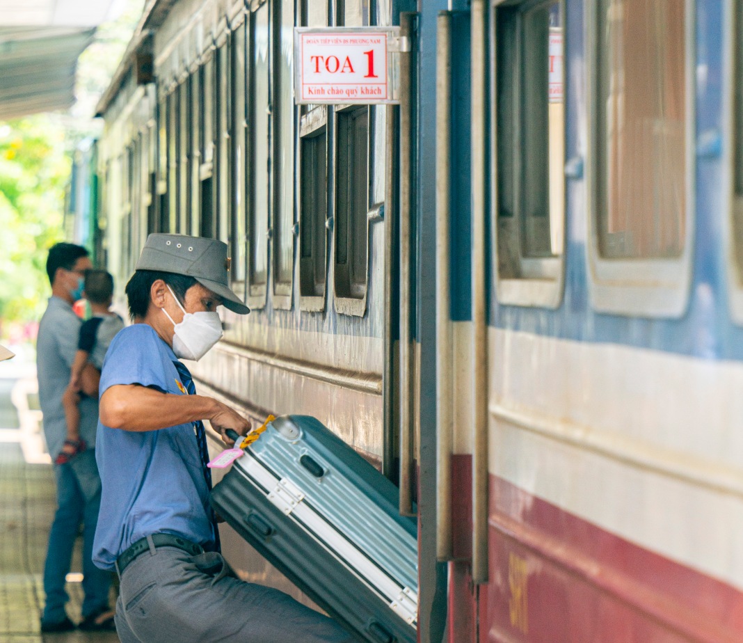 Saigon Railway Station boasts a rich historyInside Saigon Railway Station, a charming corner awaits travelersAttendants on each train car are readily available to assist passengersPassengers aboard the train traveling from Saigon Railway Station to Bien Hoa Station have the option of choosing seats or bedsPassengers receive assistance with their luggage as they board the trainBien Hoa Railway Station in Dong Nai Province welcomes travelersThe train pulls into the Bien Hoa Railway StationA young passenger stands aboard the train, admiring the scenic viewsAn attendant assists a customer with their luggage upon arrival at the stationA technician conducts an inspection inside the train carPassengers disembark at Saigon Railway Station after completing their journeyA train journey during the late sunset hours offers a picturesque experience