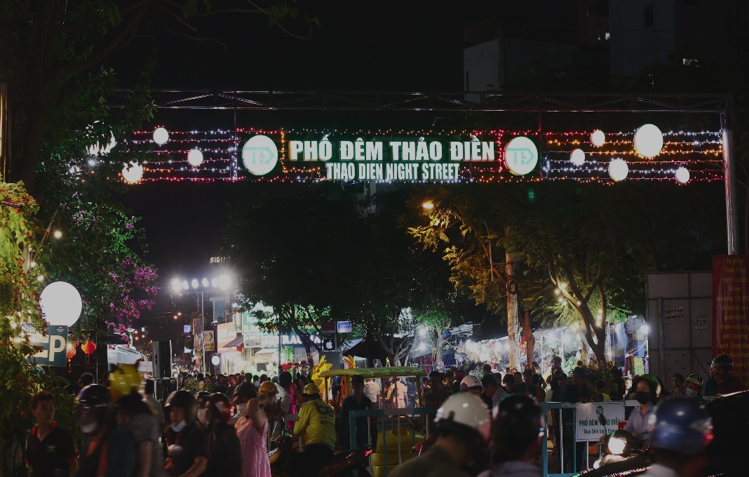 Thao Dien Night Street in Thu Duc City, has been opened on a trial basis every Friday and Saturday from 7 p.m. to 2 a.m. the next day to satisfy the recreational, entertainment, and shopping desires of both residents and tourists in the largest expat hub of the southern metropolis.