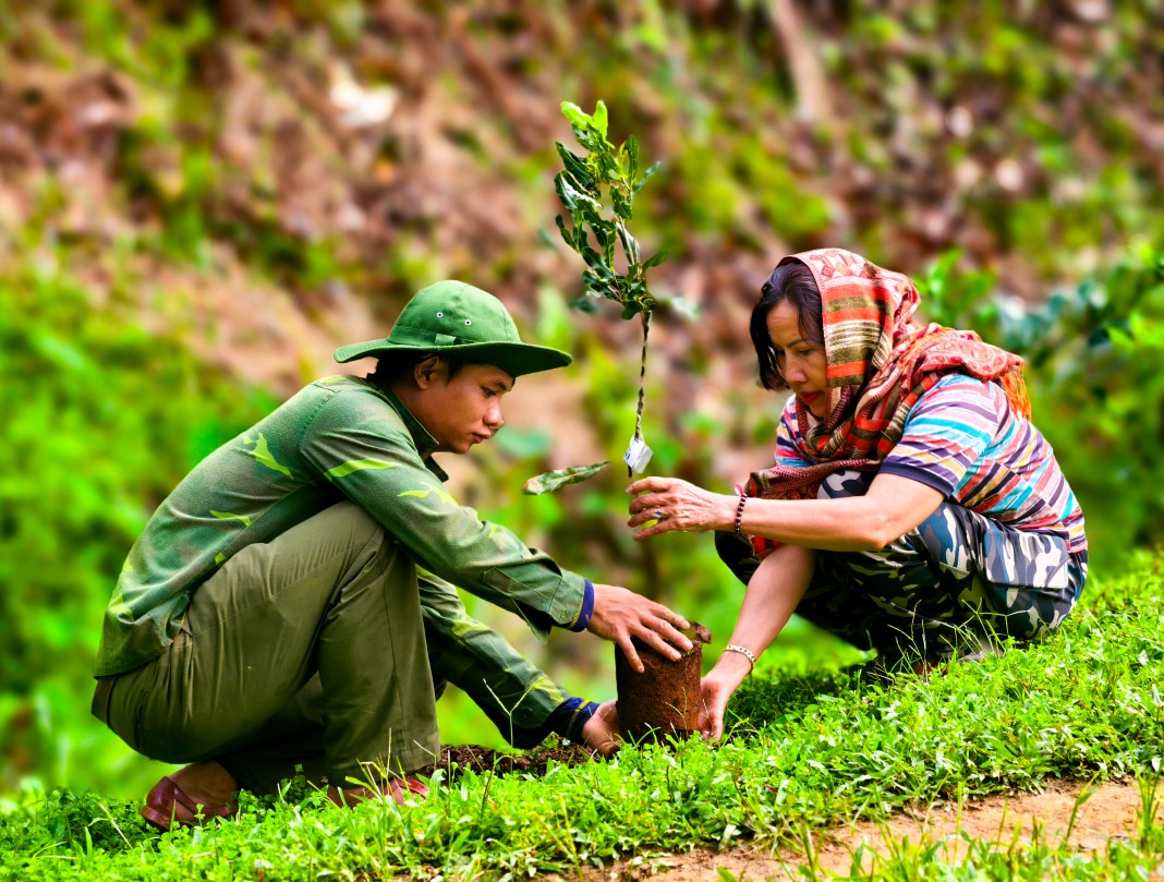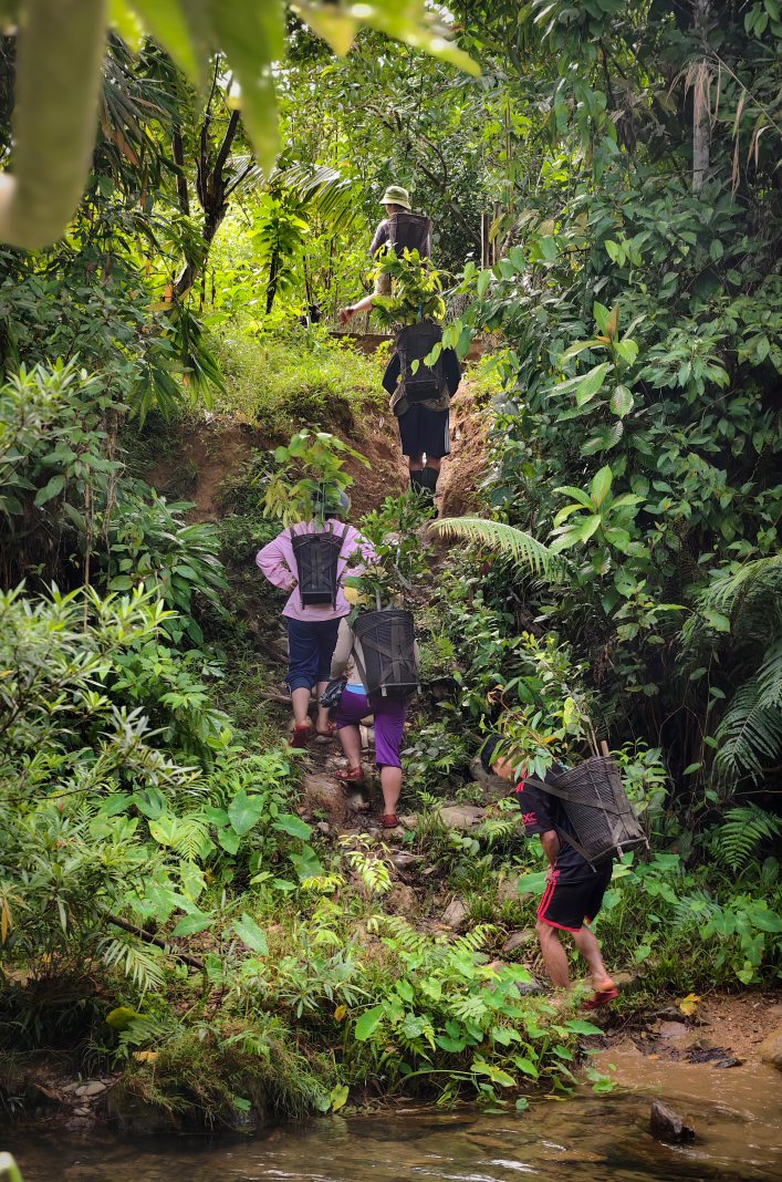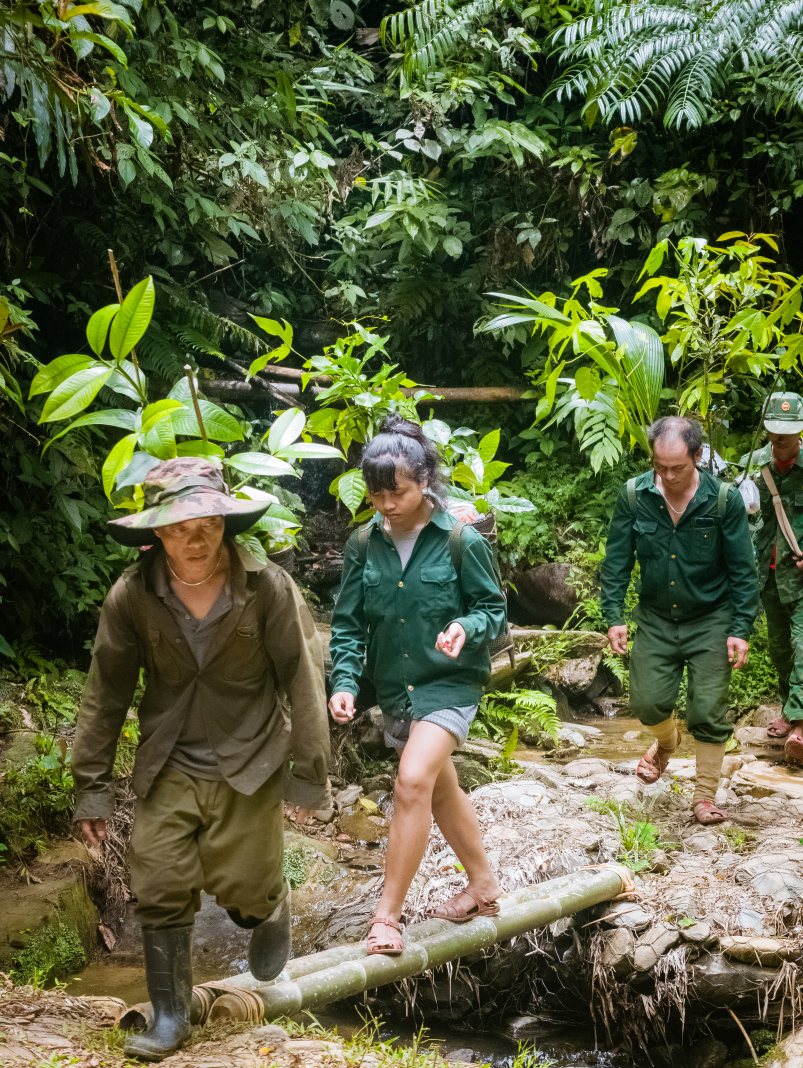 A group of volunteers from different parts of Vietnam, united by their shared passion for nature conservation and community support, set out on an extraordinary journey. They trek over nine kilometers through dense forest for half a day to deliver saplings and food supplies to the residents of Aur Village—a remote settlement deep within the Truong Son mountain range.