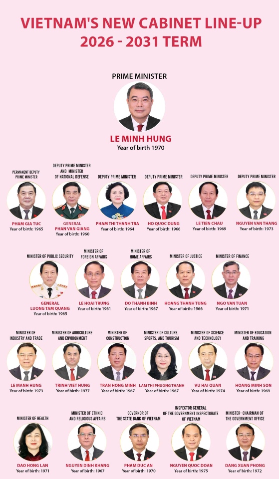 HCMC – The 16th National Assembly today, April 8, approved the appointments of six deputy prime ministers, as well as ministers for the 2026-2031 term. These appointments were proposed by Prime Minister Le Minh Hung.