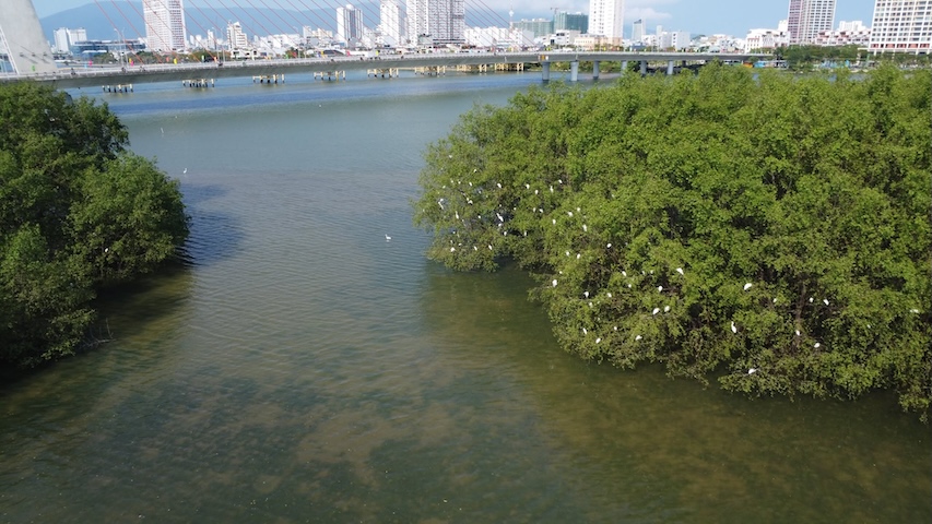 Recently, hundreds of white herons—birds that wade in shallow coastal, marine, and freshwater wetlands and mangroves—have been gathering on the mudflats of the Han River, a well-known symbol of the central coastal city of Danang.